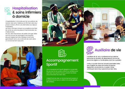Ces soins médicaux consiste respectivement à l'accompagnement médical de promptitude lors des activités sportives ( tournois , championnat, marche sportive etc...); des évènements culturels (mariage, concert, foire etc...); dans les ménages et partout ailleurs.
